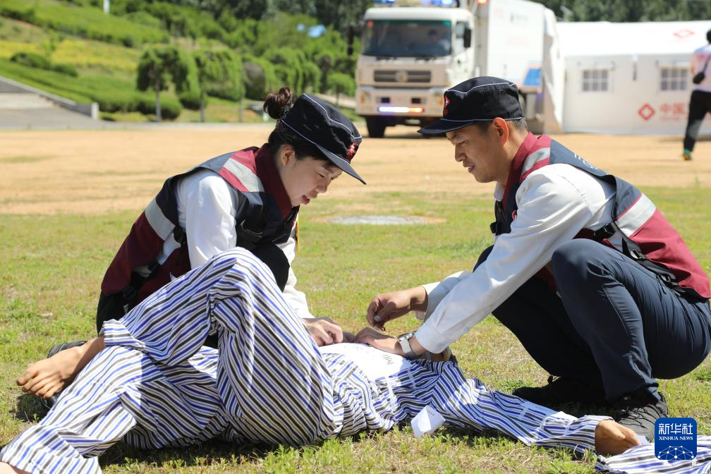 2019年6月21日,邵龙(右)参加国家紧急医学救援队(辽宁)灾难现场模拟演练(资料照片)。
