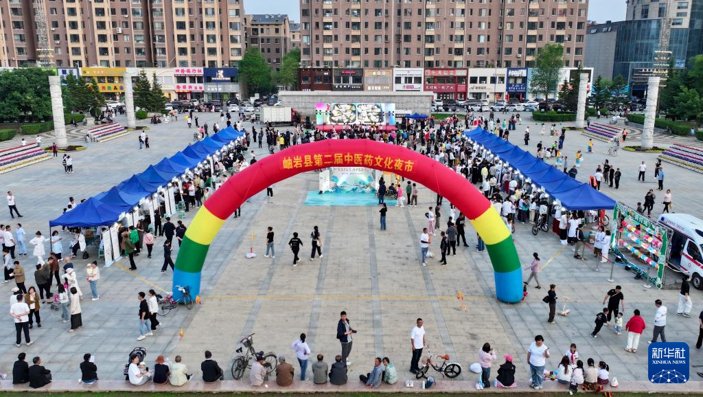 这是5月29日拍摄的岫岩县中医药文化夜市现场(无人机照片)。