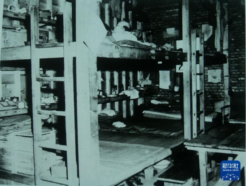 图为战俘营营房内景。
