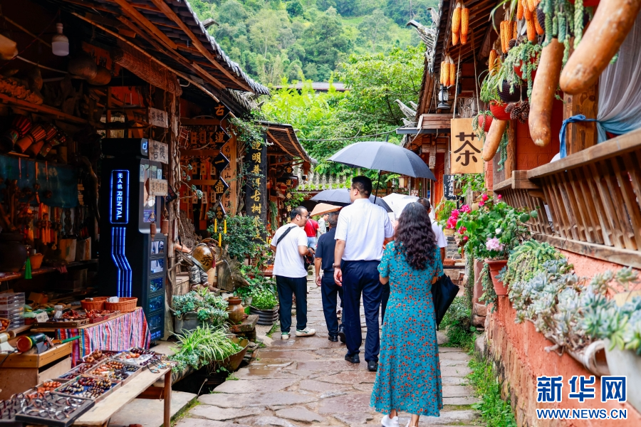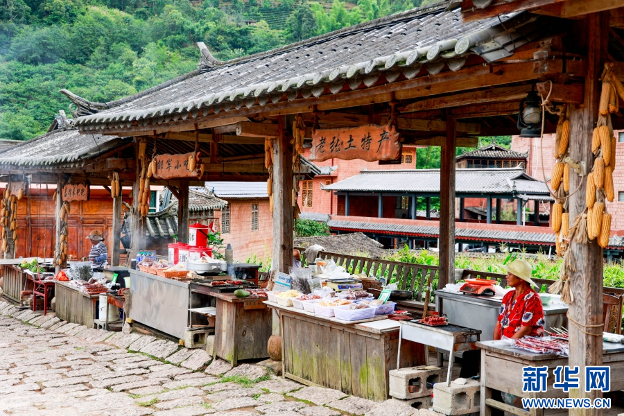 那柯里茶马驿站景区内店铺林立(8月5日摄)。新华网发(刘云 摄)