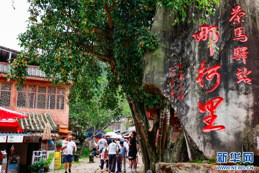 那柯里茶马驿站景区游人络绎不绝(8月5日摄)。新华网发(刘云 摄)
