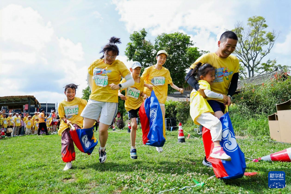 8月10日,参赛者们正参与亲子袋鼠跳趣味项目。主办方供图