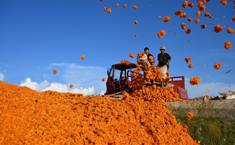 8月8日,云南省腾冲市玉壁村,紫薇花被雨打落在地面上。新华网发(赵辉 摄)