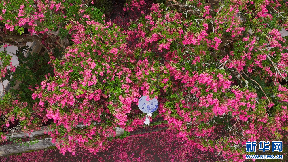 8月8日,云南省腾冲市玉壁村,紫薇花开(无人机照片)。新华网发(赵辉 摄)