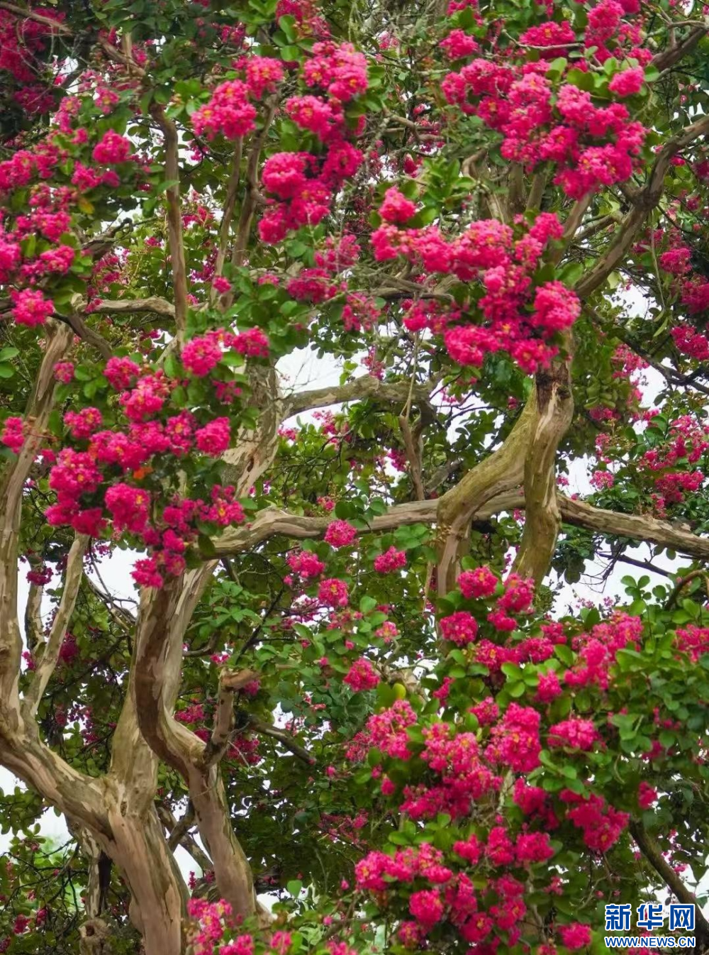 8月8日,云南省腾冲市玉壁村,紫薇花开,吸引游人观赏拍照。新华网发(赵辉 摄)