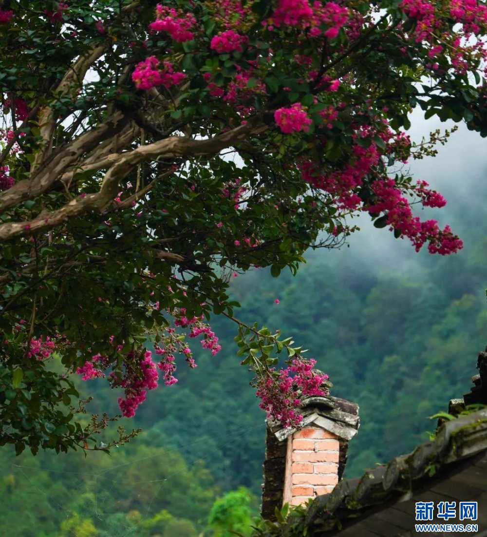 8月8日,云南省腾冲市玉壁村,紫薇花开。新华网发(赵辉 摄)