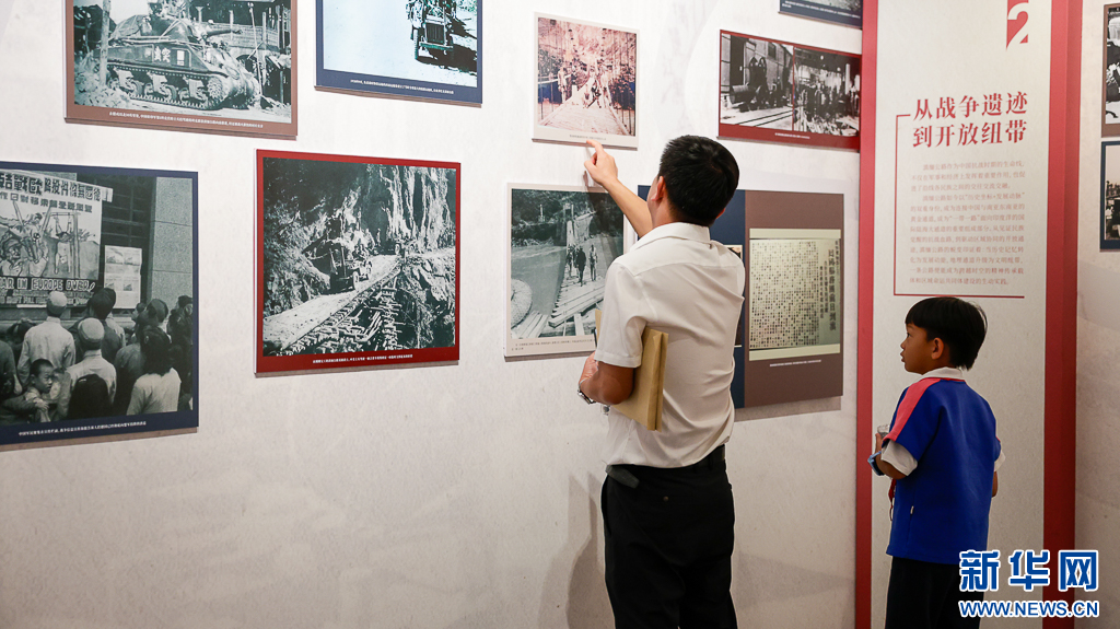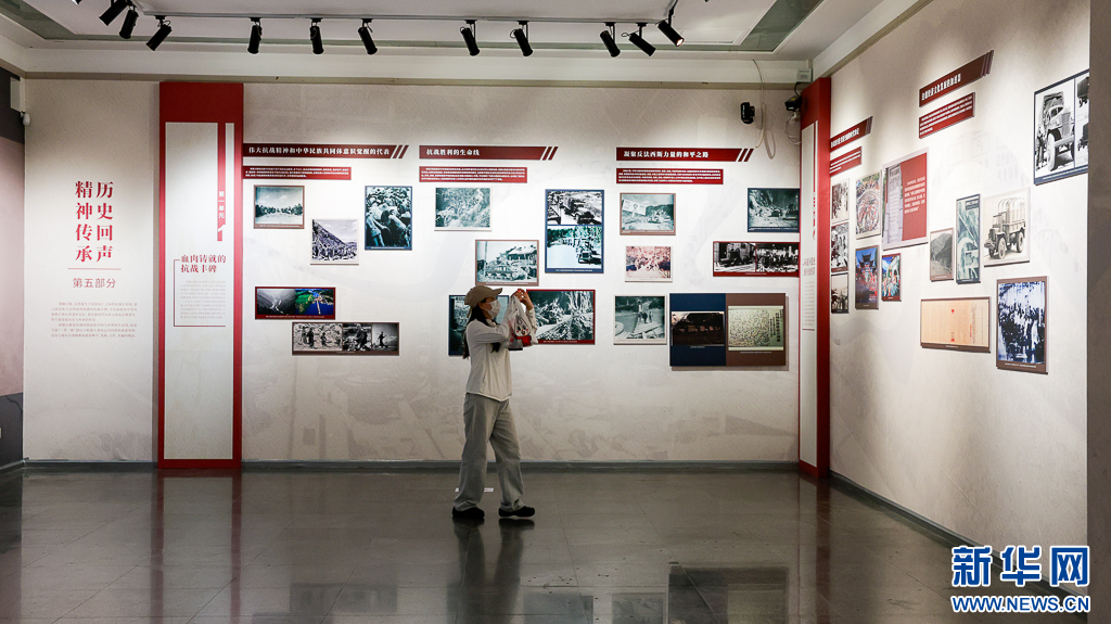“抗战时期滇缅公路档案文献图片展”展厅一角(8月14日摄)。新华网发(刘东 摄)