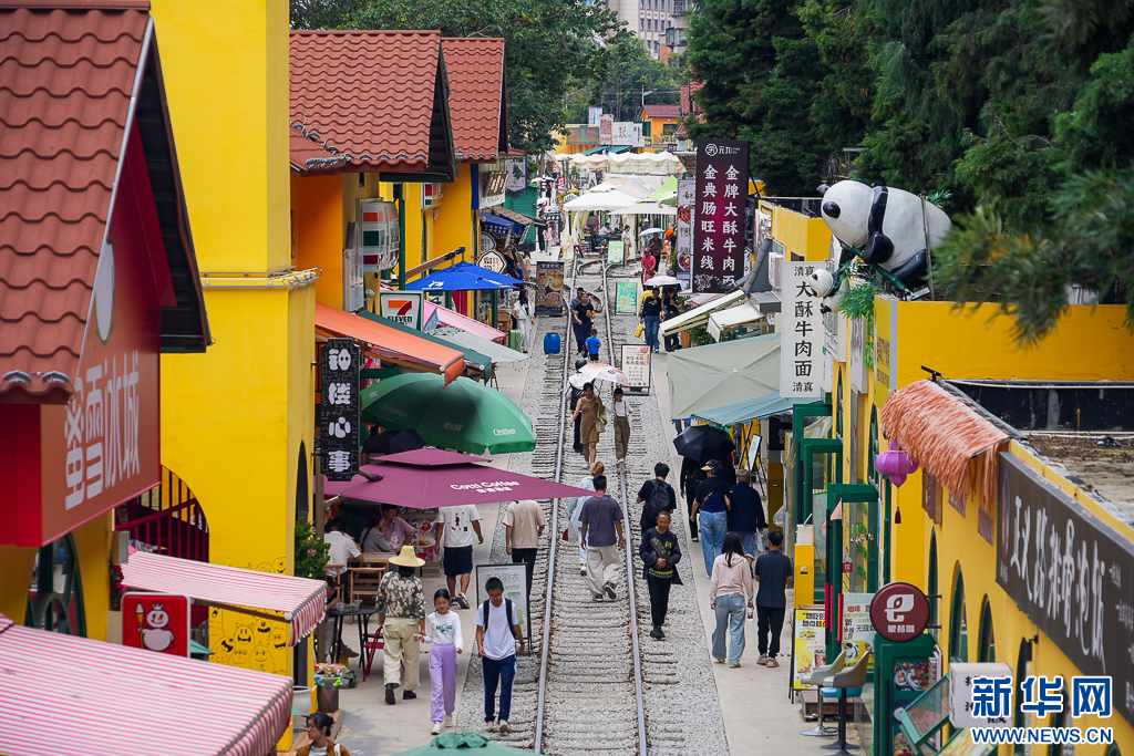 游客在昆明麻园米轨公园游玩(8月10日摄)。新华网发(郑益 摄)