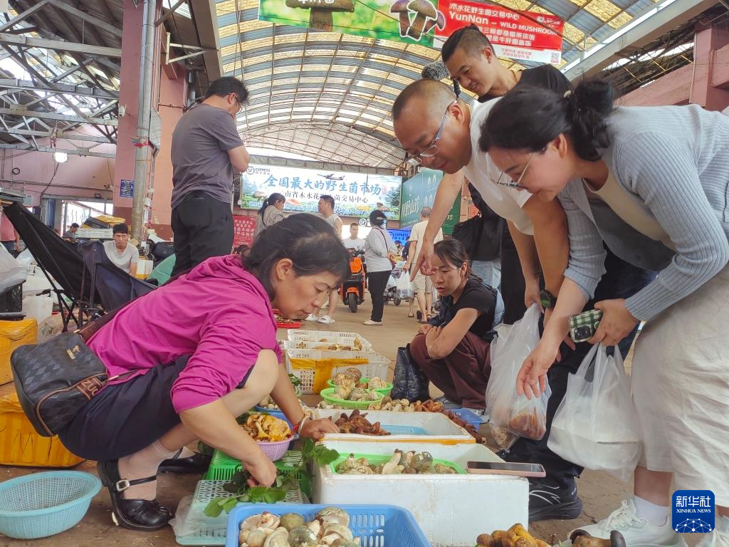 夏日凉风里,飘着菌子的鲜香。走进位于昆明的云南木水花野生菌交易中心,叫卖吆喝声不时响起。人头攒动的摊位前,松露、见手青、牛肝菌、松茸、干巴菌、鸡油菌等琳琅满目。
