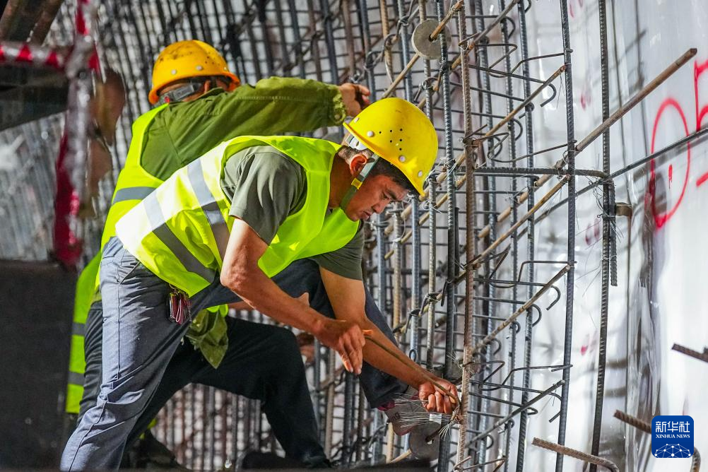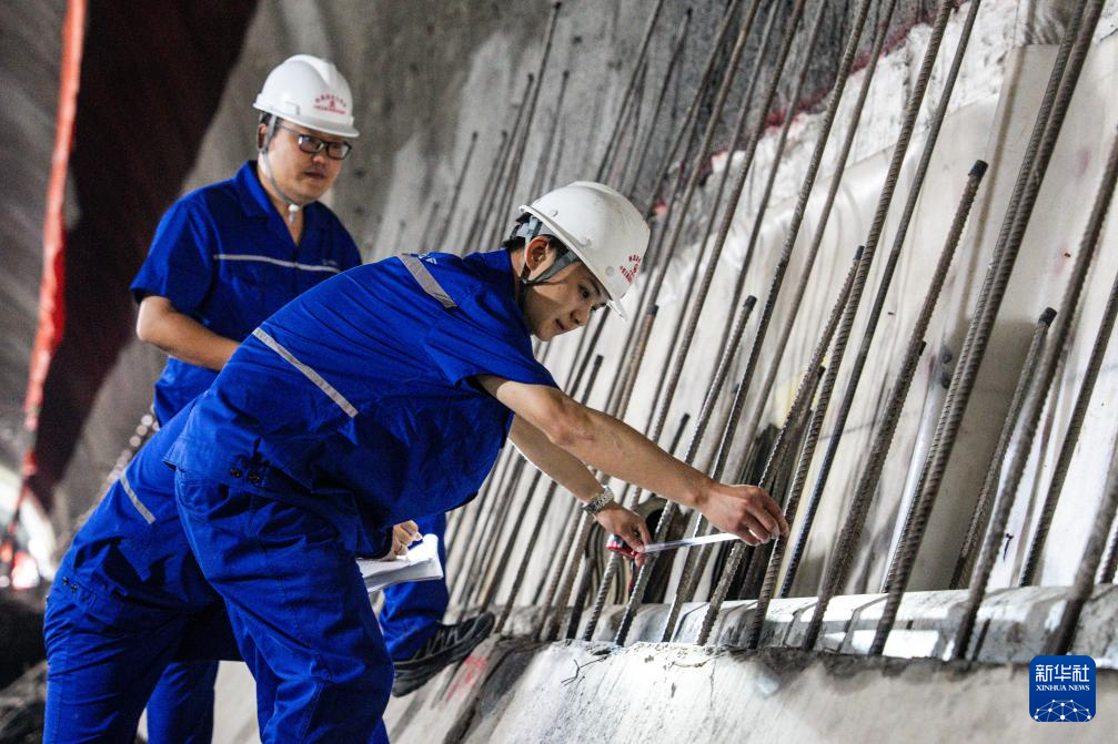 8月19日,中铁五局的建设者在渝昆高铁炳辉隧道内作业。新华社记者 胡超 摄