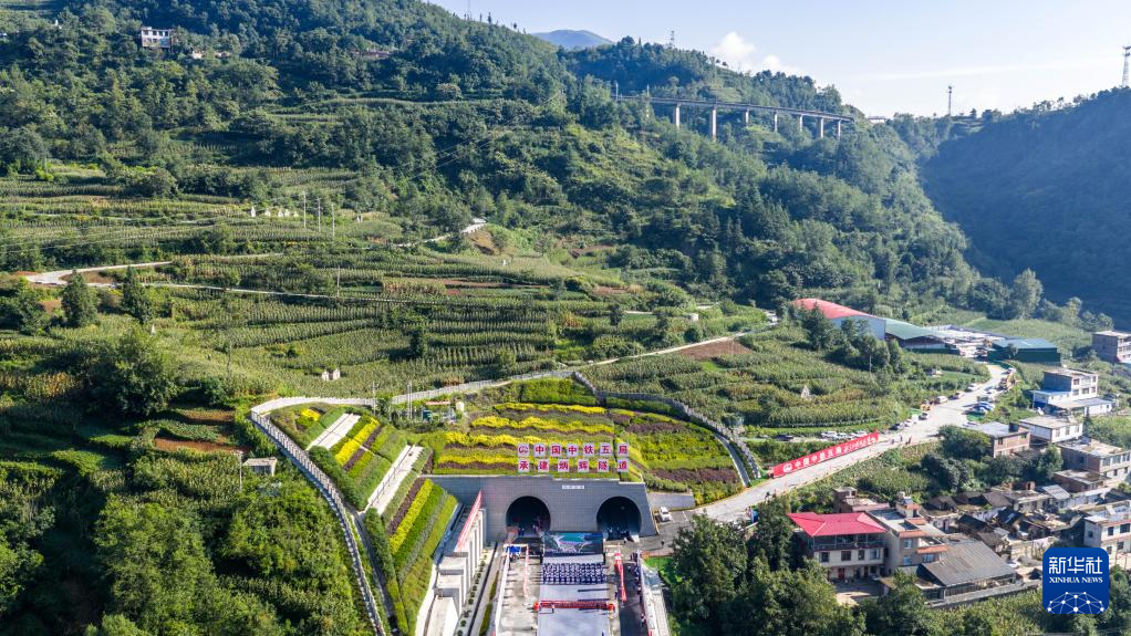 空中俯瞰渝昆高铁炳辉隧道(8月19日摄,无人机照片)。新华社记者 胡超 摄