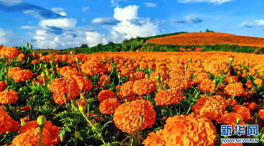盛开的万寿菊(8月14日摄)。新华网发(张天宇 摄)