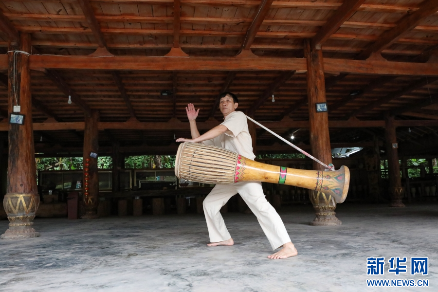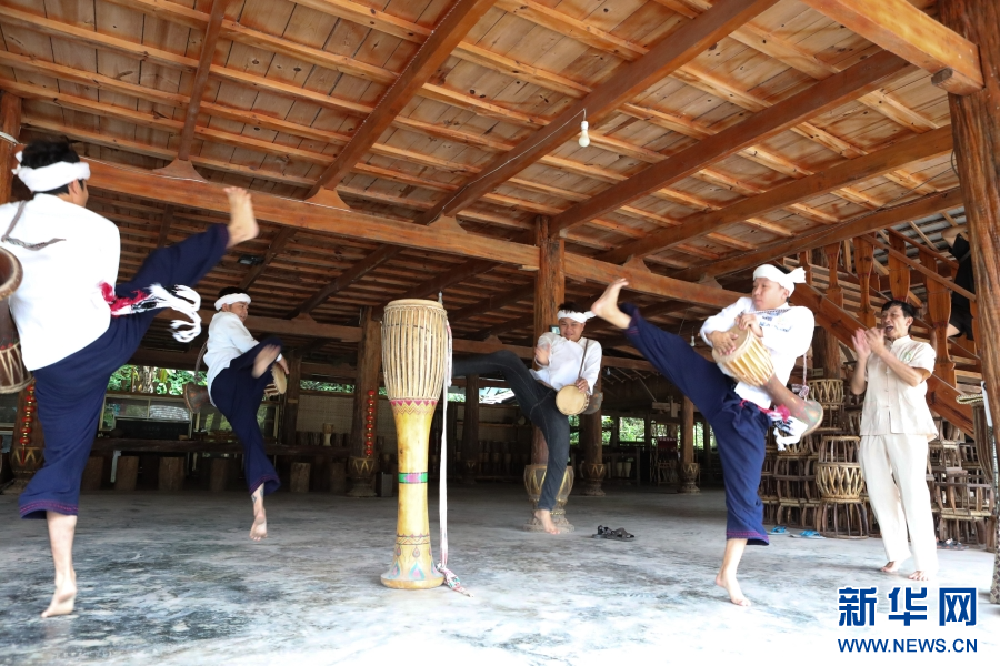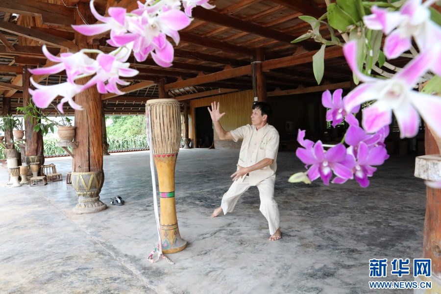 8月16日,波罕丙正在练习象脚鼓舞。新华网发(李云生 摄)