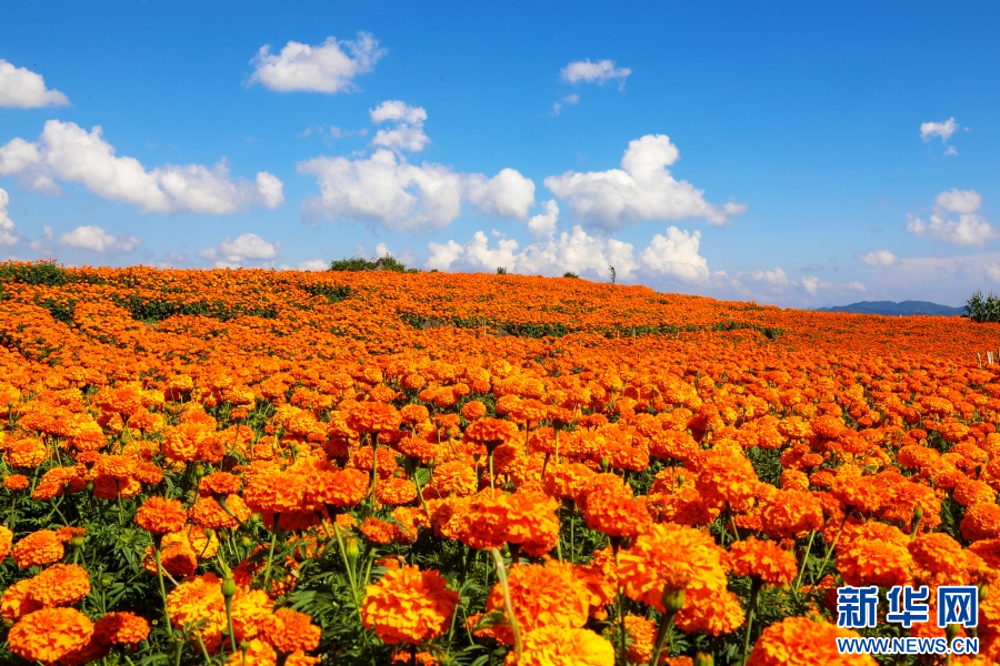 漫山遍野的万寿菊(8月19日摄)。新华网发(李伟健 摄)