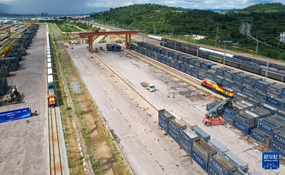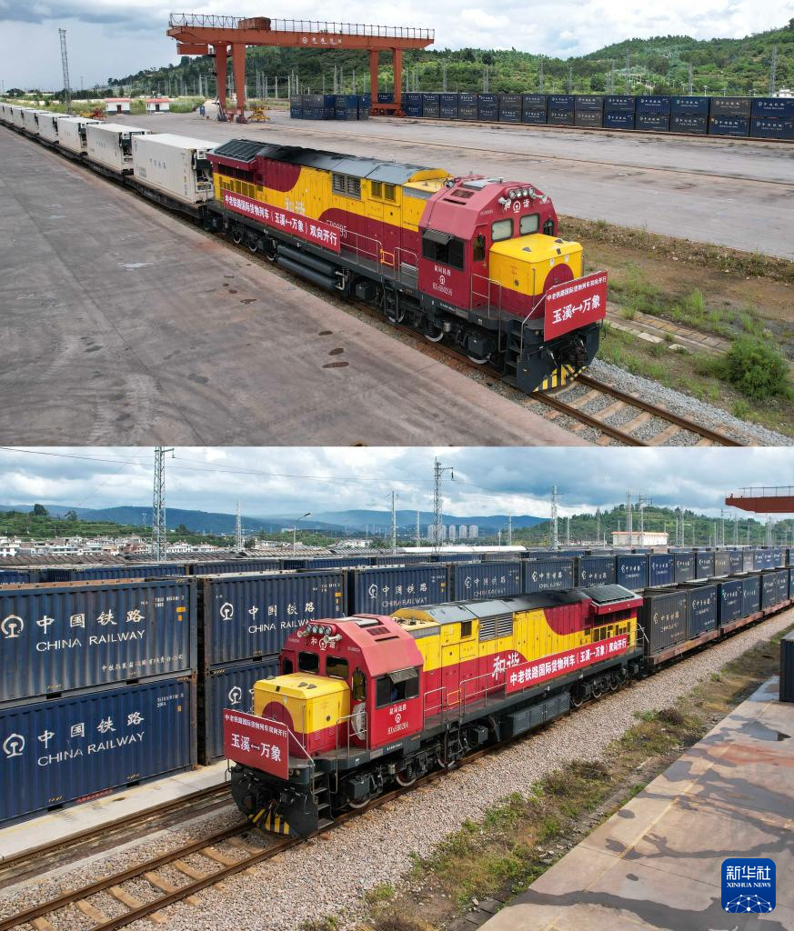 中老铁路国际货物列车(玉溪-万象)8月23日实现双向开行。