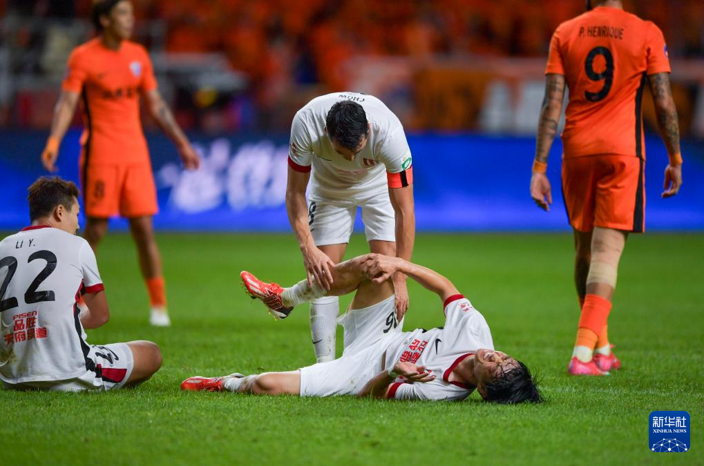 8月23日,成都蓉城队球员杨明洋(下)在比赛中受伤。新华社记者 陈欣波 摄