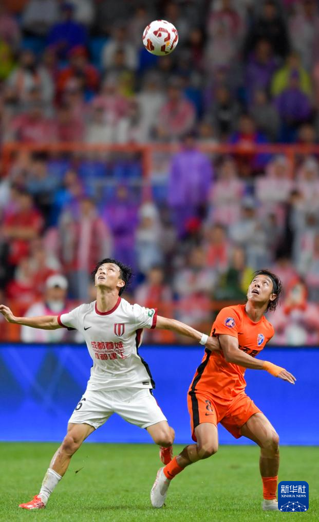 8月23日,成都蓉城队球员费利佩(左)在比赛中铲球。新华社记者 陈欣波 摄