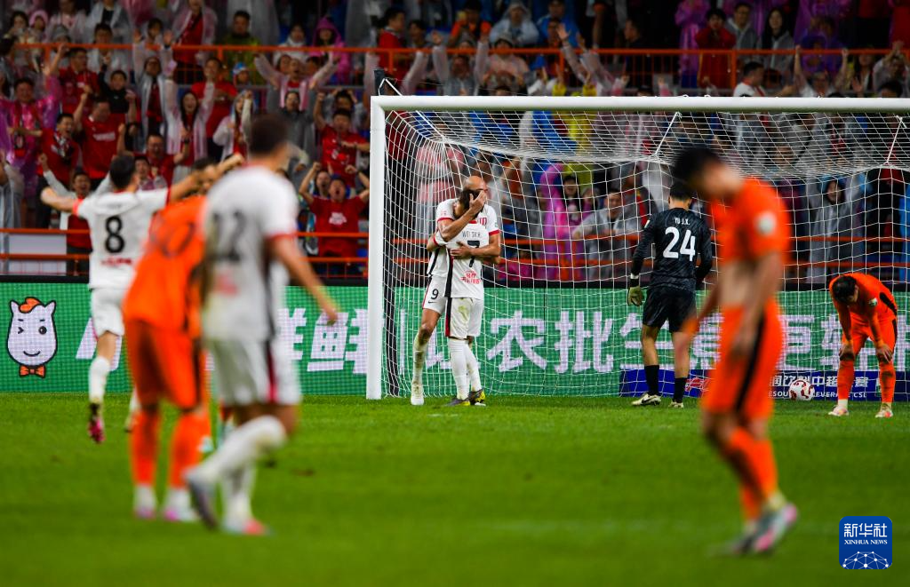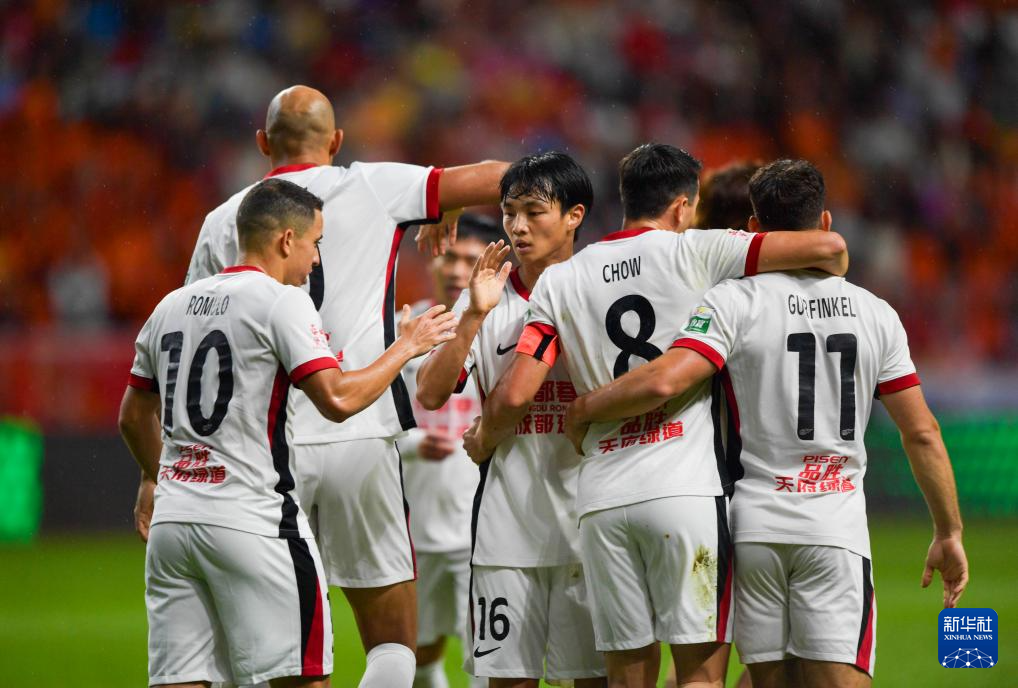8月23日,成都蓉城队球员在比赛中庆祝进球。新华社记者 陈欣波 摄