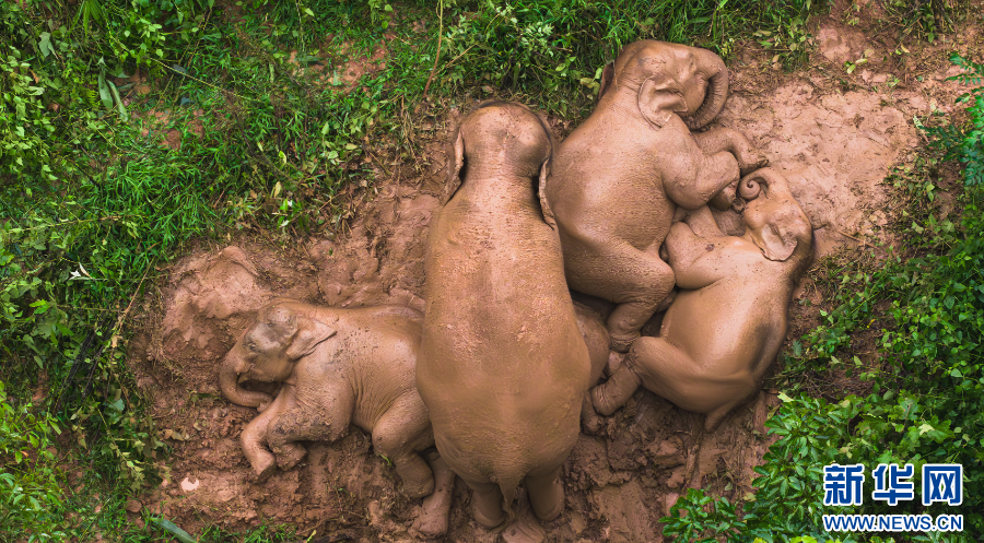 生活在江城县的野生亚洲象群。新华网发(徐华陵 摄)
