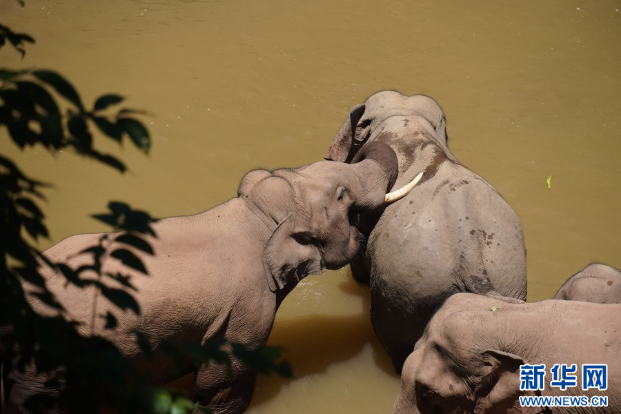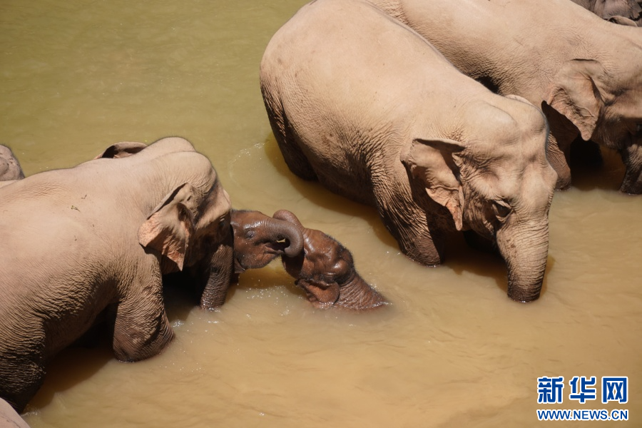 野象群正在玩耍(7月7日摄)。新华网发(徐华陵 摄)