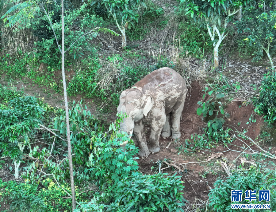 我国首次放归自然的收容救助野象“阿宝”在野外活动(2024年11月17日摄)。新华网发(云南西双版纳国家级自然保护区管护局 供图)