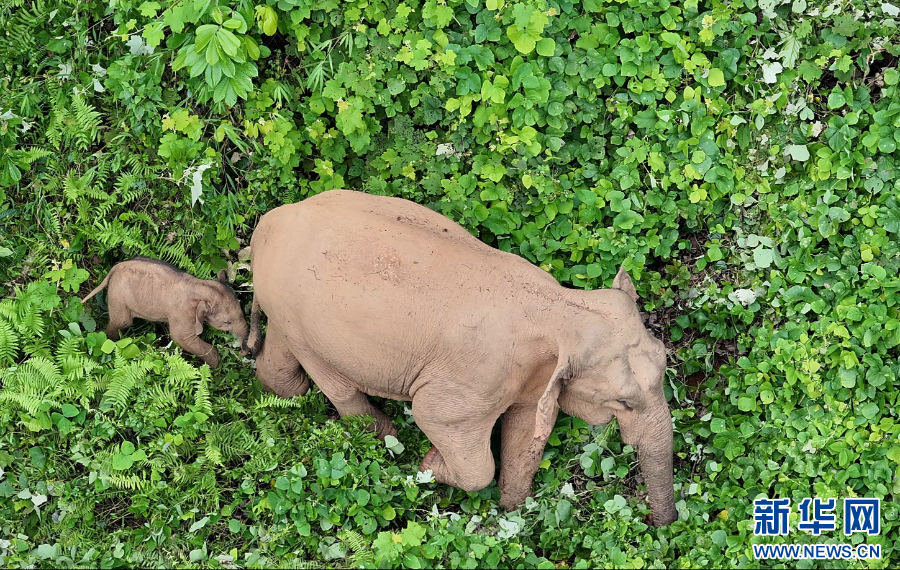 近期,在亚洲象国家公园候选区临沧片区,随着无人机镜头不断拉近,一头在母象身边酣睡的小象出现在画面中,云南南滚河国家级自然保护区亚洲象群再次喜添新成员。