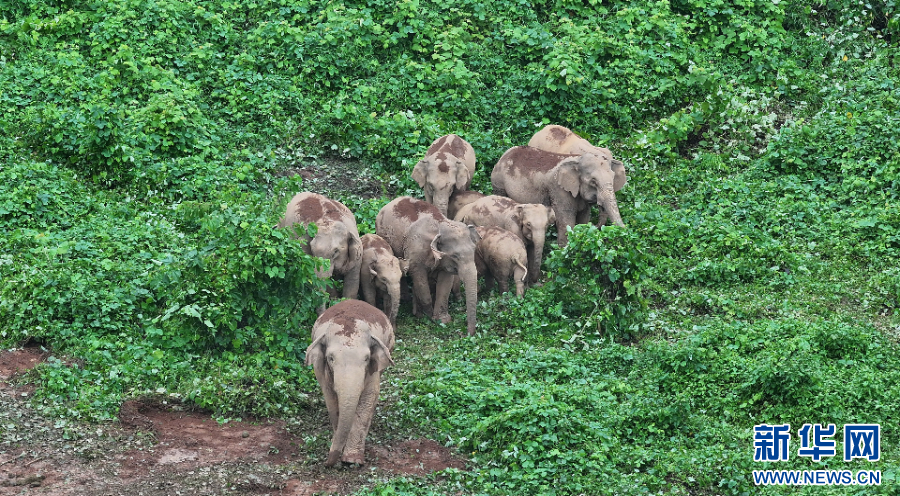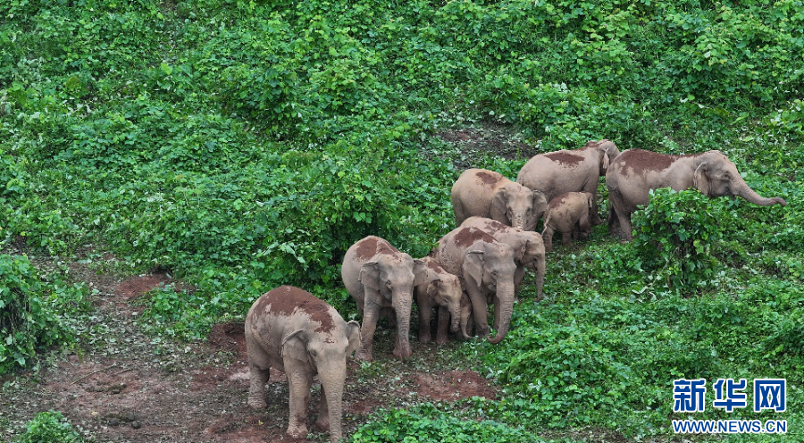 新生幼象跟随母象一同活动(视频截图)。新华网发(临沧市融媒体中心 供图)