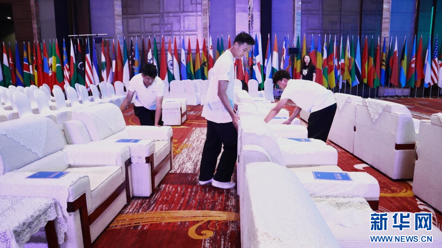 志愿者协助论坛会场布置(9月5日摄)。新华网发(云南省志愿者协会 供图)