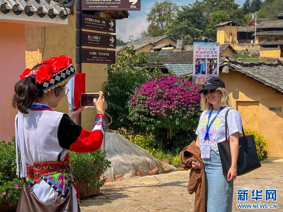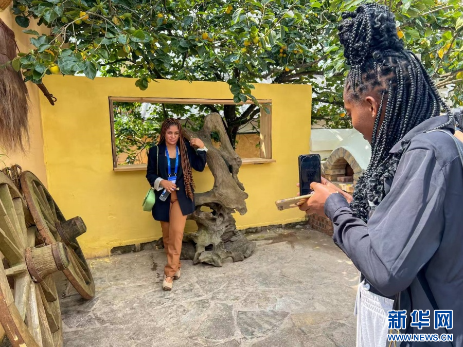 嘉宾在可邑小镇“打卡”(9月8日摄)。新华网发(杨桢宇 摄)