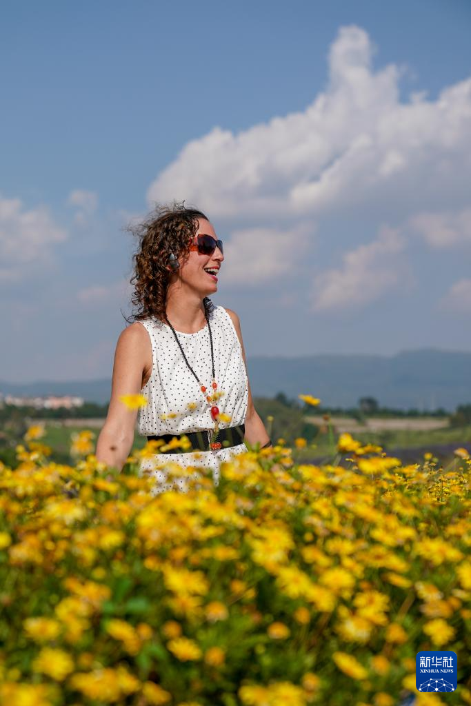 9月8日,游客在东风韵小镇花海中游玩。新华社记者 彭奕凯 摄