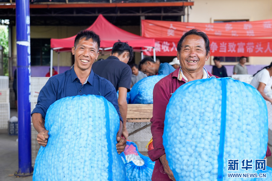 勐约乡蚕茧大户杨从帅夫妻出售蚕茧(9月5日摄)。新华网发(方雯青 摄)