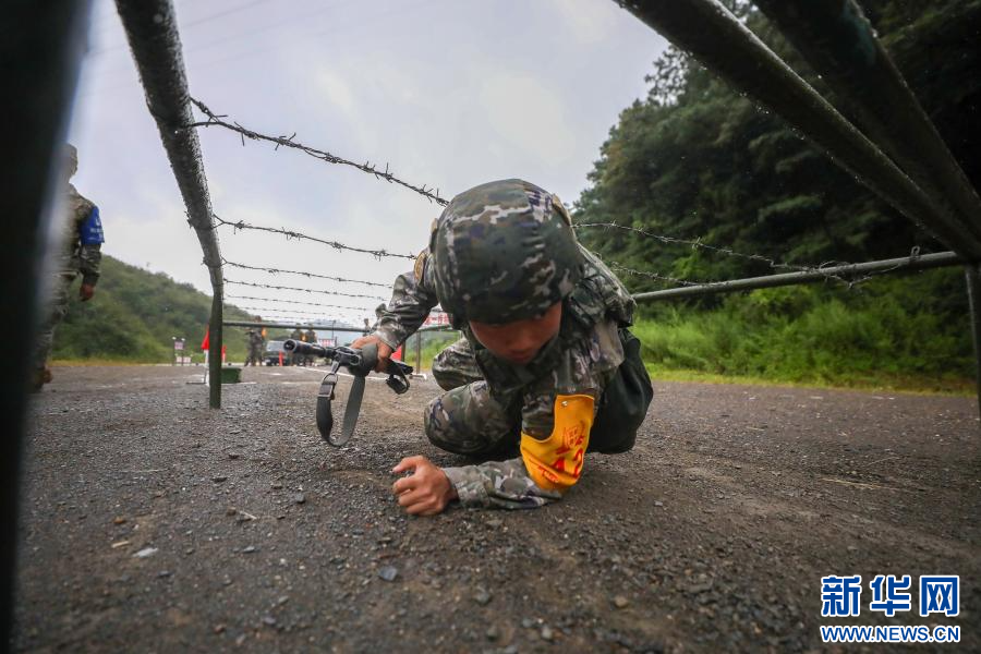 参赛队员穿越高桩网(9月12日摄)。新华网发(杜海渊 摄)
