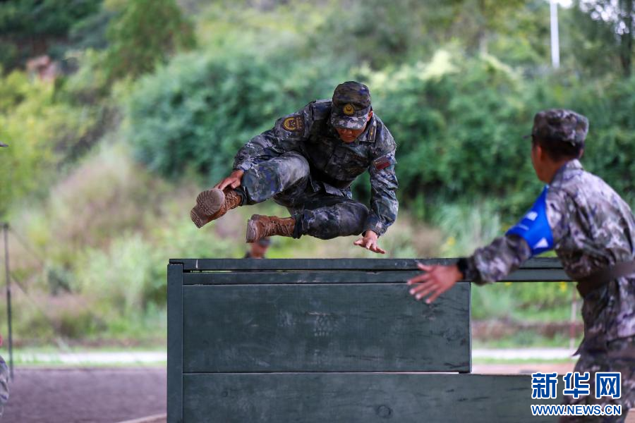 参赛队员穿越矮墙(9月12日 摄)。新华网发(杜海渊 摄)
