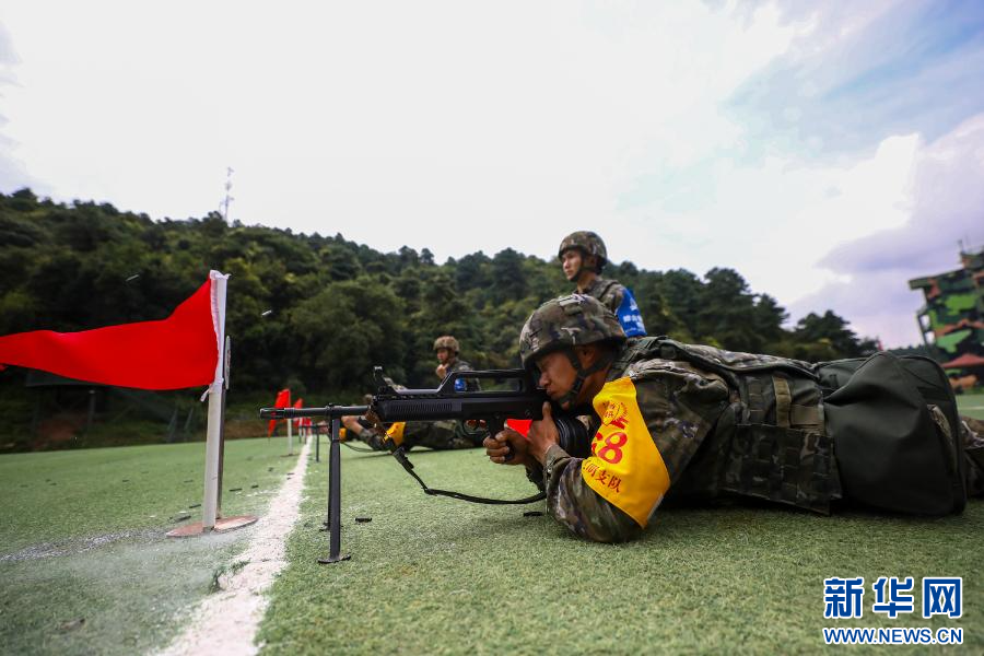 参赛队员进行自动步枪射击课目(9月11日摄)。新华网发(杜海渊 摄)