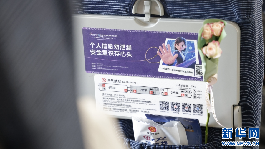 据了解,该趟列车依托中老铁路国际通道优势,设置了8个主题车厢,涵盖数据安全、个人信息保护、防范电信网络诈骗等内容。列车上还设置了“网安知识鲜花”,以玫瑰、康乃馨等花材为载体,将网络安全知识传播到列车每一处。