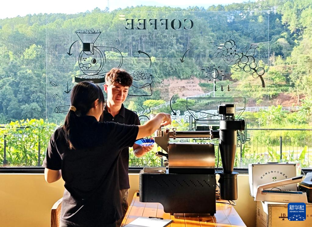 9月20日,普洱市思茅区南屏镇南岛河村白沙坡小组的“美丽星村·有风咖谷”工作人员在烘焙咖啡豆。新华社记者 邢广利 摄