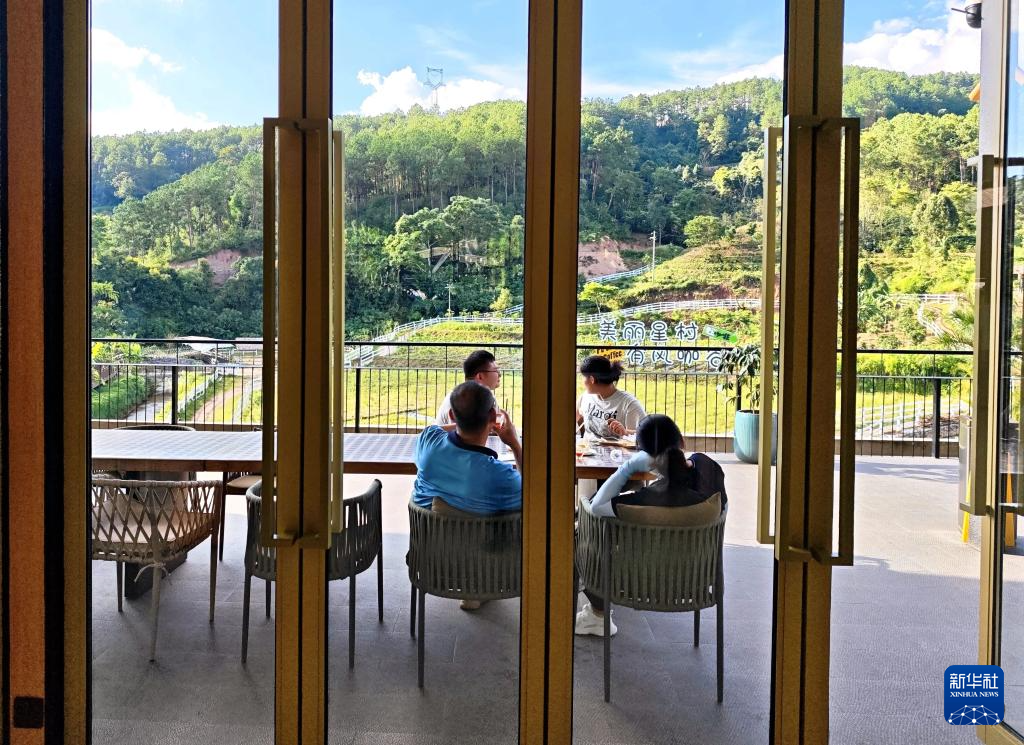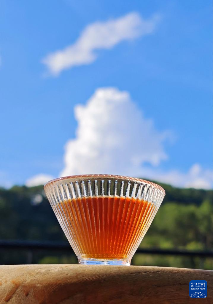 9月20日,游客在普洱市思茅区南屏镇南岛河村白沙坡小组的“美丽星村·有风咖谷”品尝咖啡。新华社记者 邢广利 摄