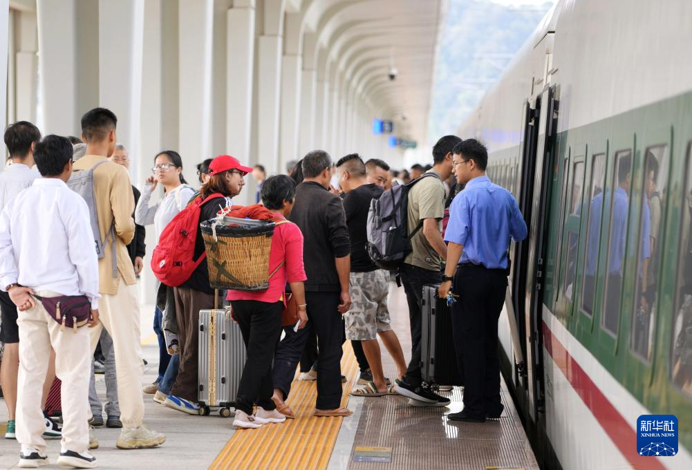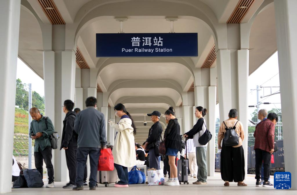 9月20日,旅客在中老铁路普洱站进站乘车。新华社记者 邢广利 摄