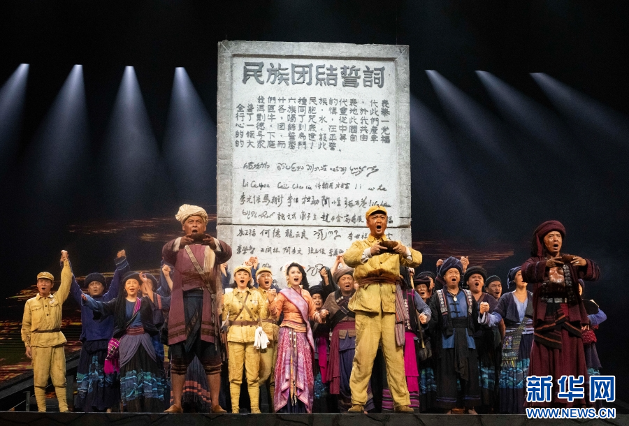 民族史诗话剧《澜沧水长》在云南省大剧院上演(2024年10月14日摄)。新华社记者 陈欣波 摄