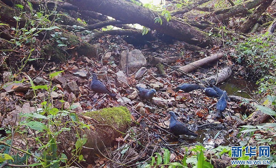 点斑林鸽(红外相机截图)。