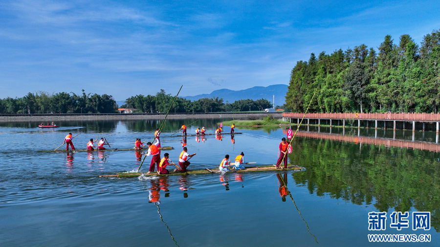 竹筏赛现场(10月30日摄)。新华网发(段宗智 摄)