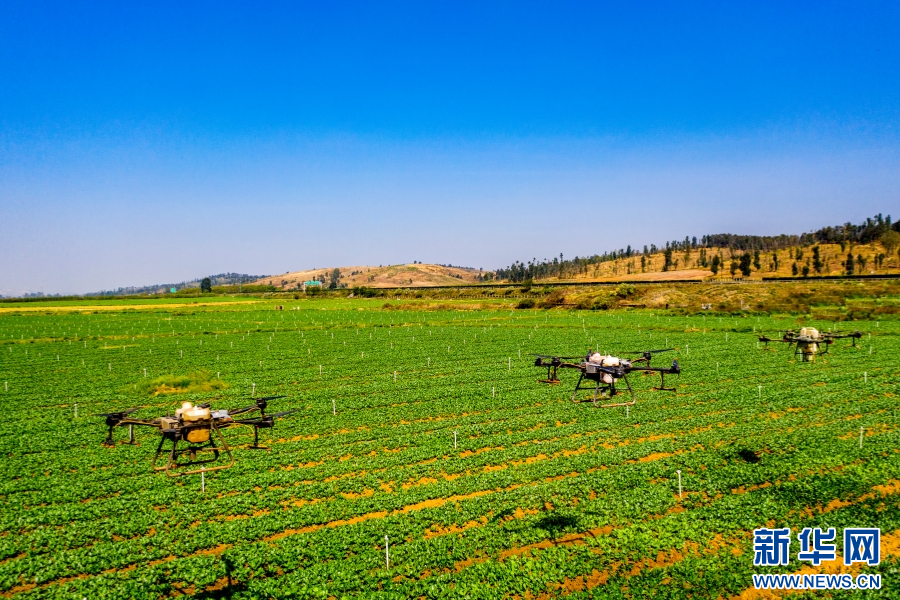 蔬菜基地正在进行无人机喷洒(资料图)。新华网发(熊平祥 摄)