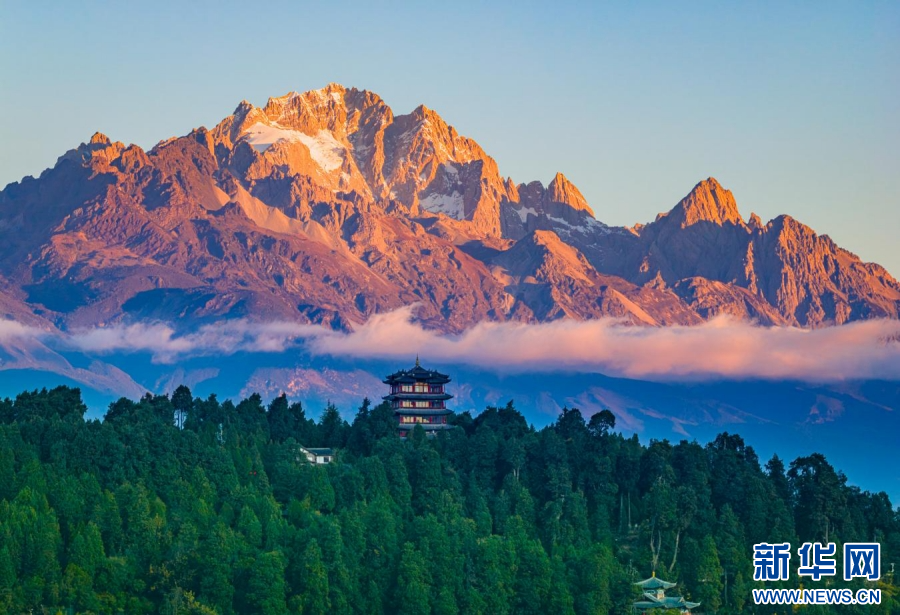 玉龙雪山“日照金山”美景(11月15日摄)。新华网发(徐俊 摄)