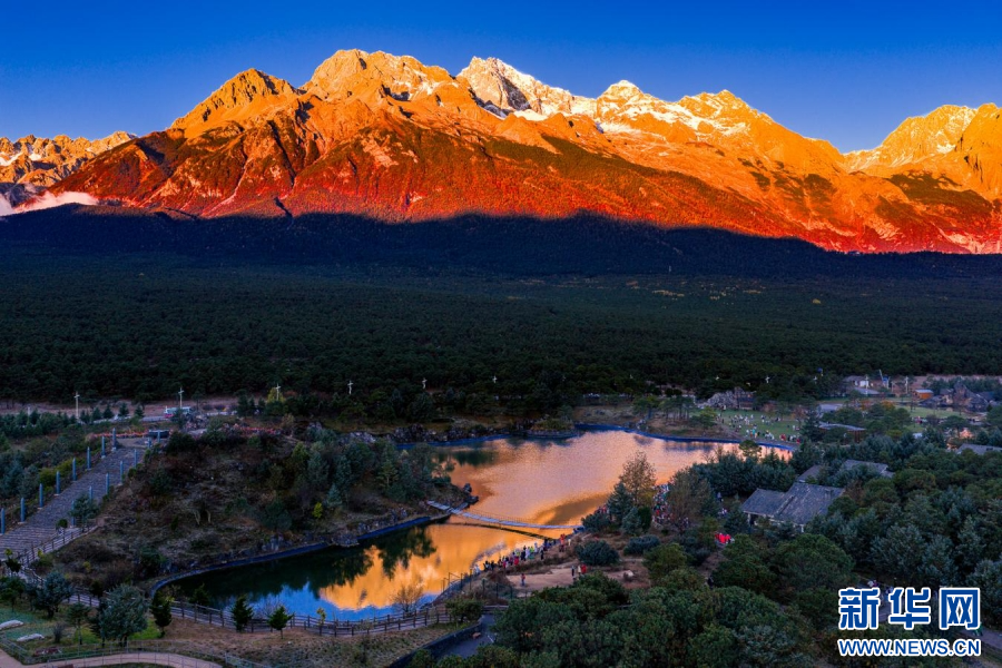 近日,云南省丽江市迎来“日照金山”最佳观赏季,玉龙雪山脚下的观景点人头攒动,游客和摄影爱好者在晨风中等待着一场壮丽的“日照金山”。