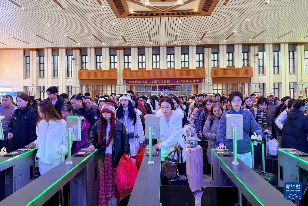11月20日,旅客在云南香格里拉站通过检票口乘车。新华社发(杨紫轩摄)