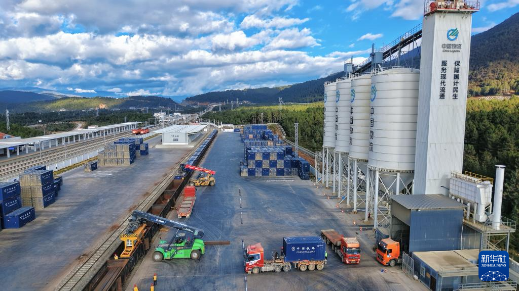 这是11月21日拍摄的云南迪庆藏族自治州小中甸站货场(无人机照片)。新华社发(杨紫轩摄)