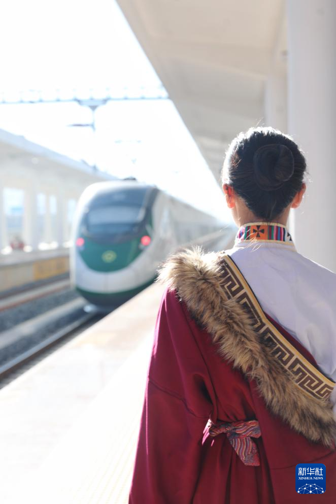 11月20日,普米族旅客卓玛次尔在云南香格里拉站乘车前往丽江探亲。新华社发(杨紫轩摄)