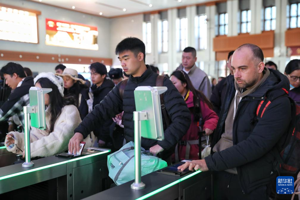 11月18日,旅客在云南香格里拉站检票乘车。新华社发(杨紫轩摄)
