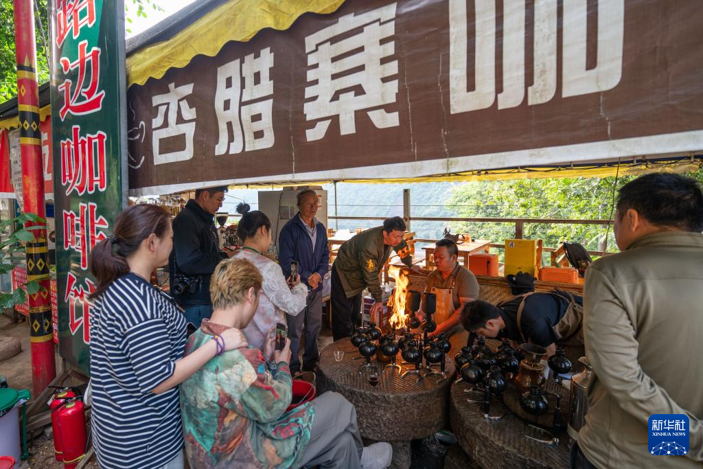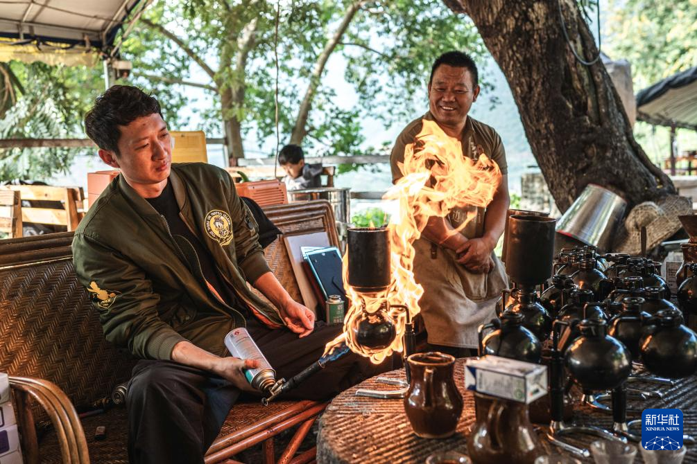 新华社昆明11月23日电(记者王冠森、高咏薇)清晨,怒江峡谷雾气弥漫,咖叔挂上围裙,在磨盘桌后点燃喷枪,于虹吸壶底摆弄着火焰,待水沸后,倒入咖啡,不时搅动,氤氲咖香随之弥漫散开。