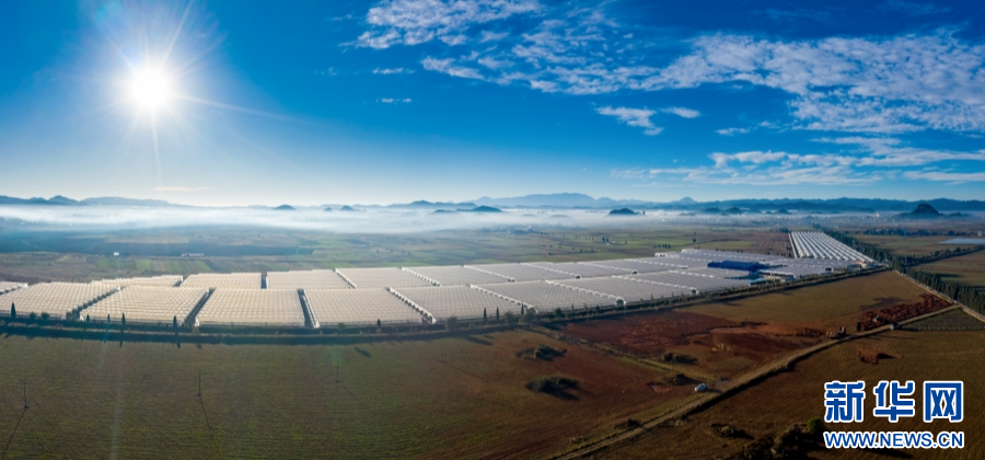 砚山县蓝莓数字化产业基地全景(资料图)。新华网发(王国礼 摄)